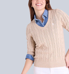 SOFT CABLE V-NECK SWEATER , 321116C-1Q00A