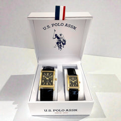 HIS AND HERS BLACK STRAP SQUARE FACE WATCH SET,USC2709UO