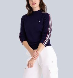Elevate your casual look with the Signature Stripe Raglan Mock Neck Sweater from U.S. Polo Assn. This sleek knit blends classic heritage style with modern athletic details, featuring bold signature stripes running down the sleeves for a sporty-chic edge. The raglan sleeve design ensures a relaxed, comfortable fit, while the ribbed mock neck and trims keep the silhouette polished. Embroidered with the iconic double horseman logo, it’s a versatile sweater that works season after season.